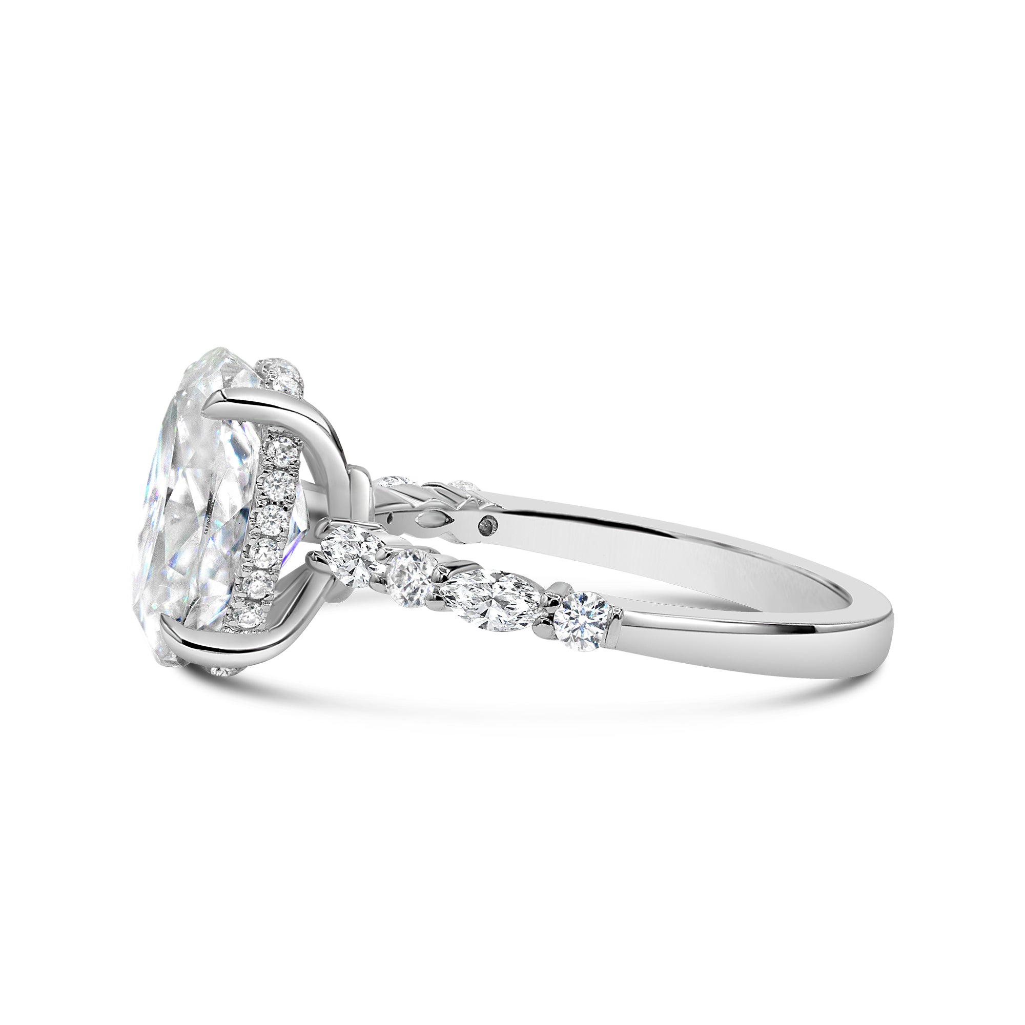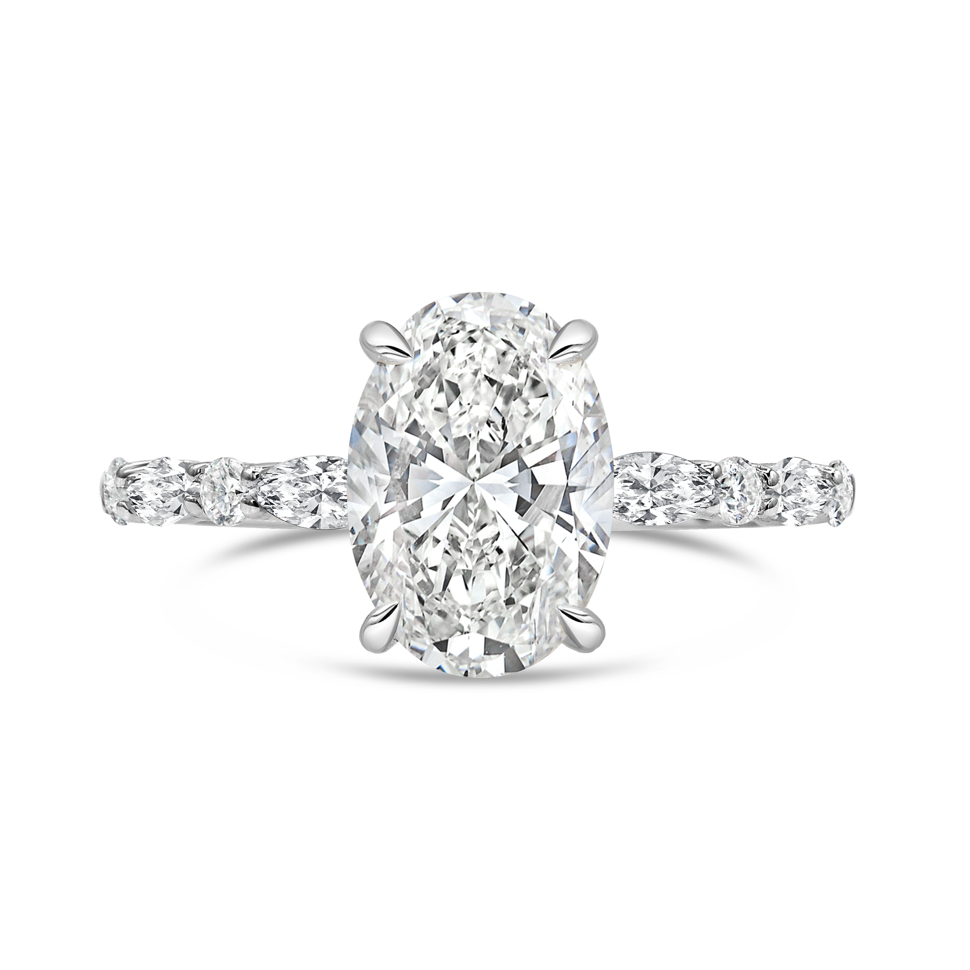 3.23 CT, Oval Cut, Moissanite, Claw Prongs, Hidden Halo, Alternating Marquise and Round Accent Stones, Embedded Birthstones, Low Set