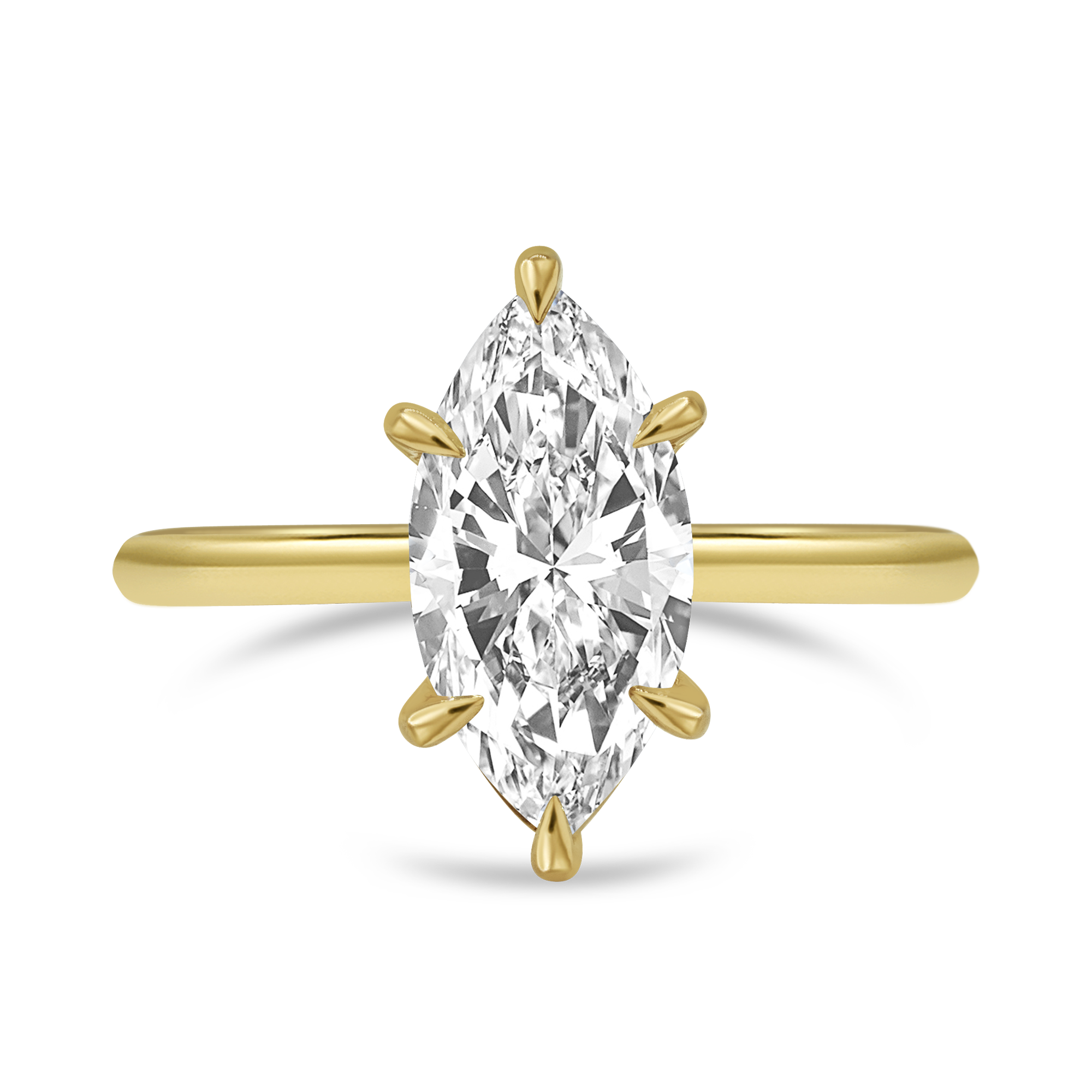 2CT Lab Diamond, Marquise, Modified Brilliant, Cathedral Setting, 6 Claw Prongs, High Set with Curvature (to allow for flush fit eternity band)
