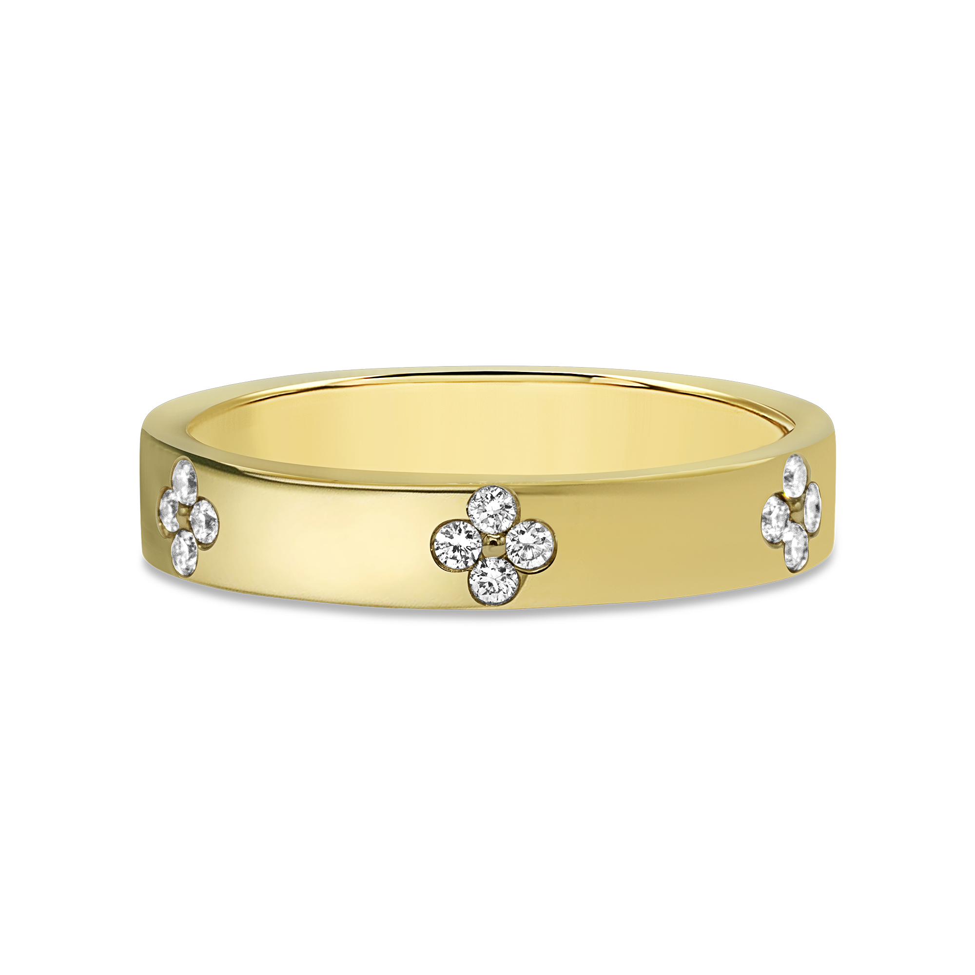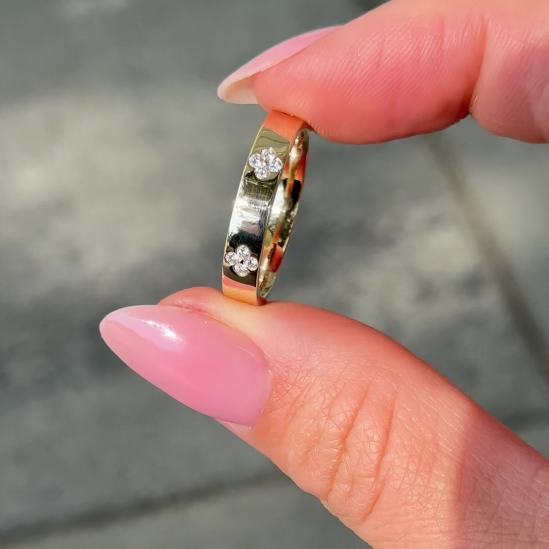 Embedded Flower Motif Diamond Band, Round Lab Diamonds, 4mm Cigar Band